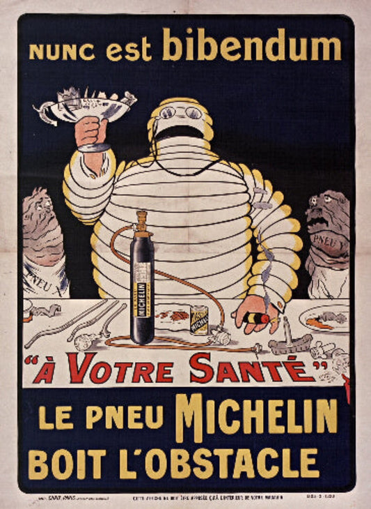 Discover a piece of automotive and advertising history with our collection of Michelin Man Bibendum Vintage Poster Reproductions. Our high-quality reproduction vintage art prints celebrate the timeless charm of Bibendum, the iconic Michelin Man, as he invites travelers to explore the open road. These posters capture the spirit of early 20th-century road trips and the dawn of a new era in transportation.
